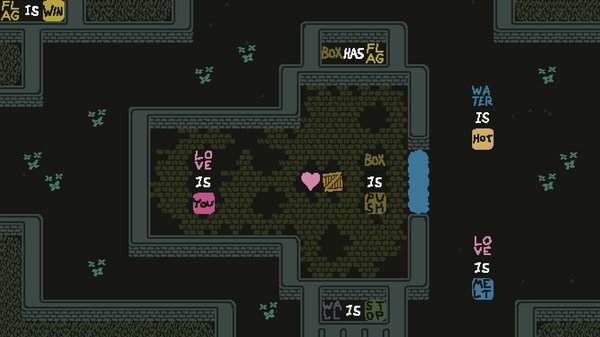 Baba Is You is a puzzle game where you can change the rules by which you play. In every level, the rules themselves are lying as blocks you can interact with; by manipulating them, you can change how the level works and cause surprising, unexpected interactions! With some simple block-pushing you can turn yourself into a rock, turn patches of grass into dangerously hot obstacles, and even change the goal you need to reach to something entirely different.