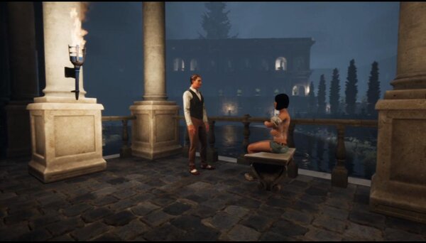 The game is set in a mythological ancient Roman city somewhere deep underground. A group of 26 archeologists explored the city until one of them accidentally broke a taboo and activated an ancient curse. Now they are trapped in a time loop and cursed to die and relive their deaths forever. That is, unless one of them changes what happened to the city and its inhabitants long ago, thus preventing the curse. In the ruins, there's a portal, which leads to the past and allows the characters to relive and alter the previous events in the vein of The Groundhog Day movie. The Forgotten City features branching non-linear plots with difficult moral dilemmas and plot twists. There are multiple endings that depend on the player's actions.