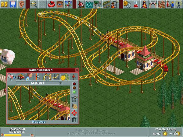 RollerCoaster Tycoon is a strategy game developed by Chris Sawyer. It came out on 31-03-1999. It was published by Hasbro Interactive. The game is rated as "Exceptional" on RAWG.